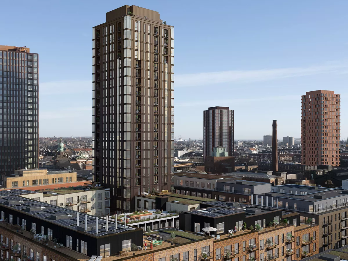 On building section BA6V in Carlsberg Byen is constructing the residential block Nebelong Building with Carls Tårn and the longhouse Olivia Hus. The project contains both housing, offices and commercial leases. As an indication of the future demand for housing, the project in Carlsberg Byen also includes the Bofællesskabet, which is being built with a large proportion of common areas.